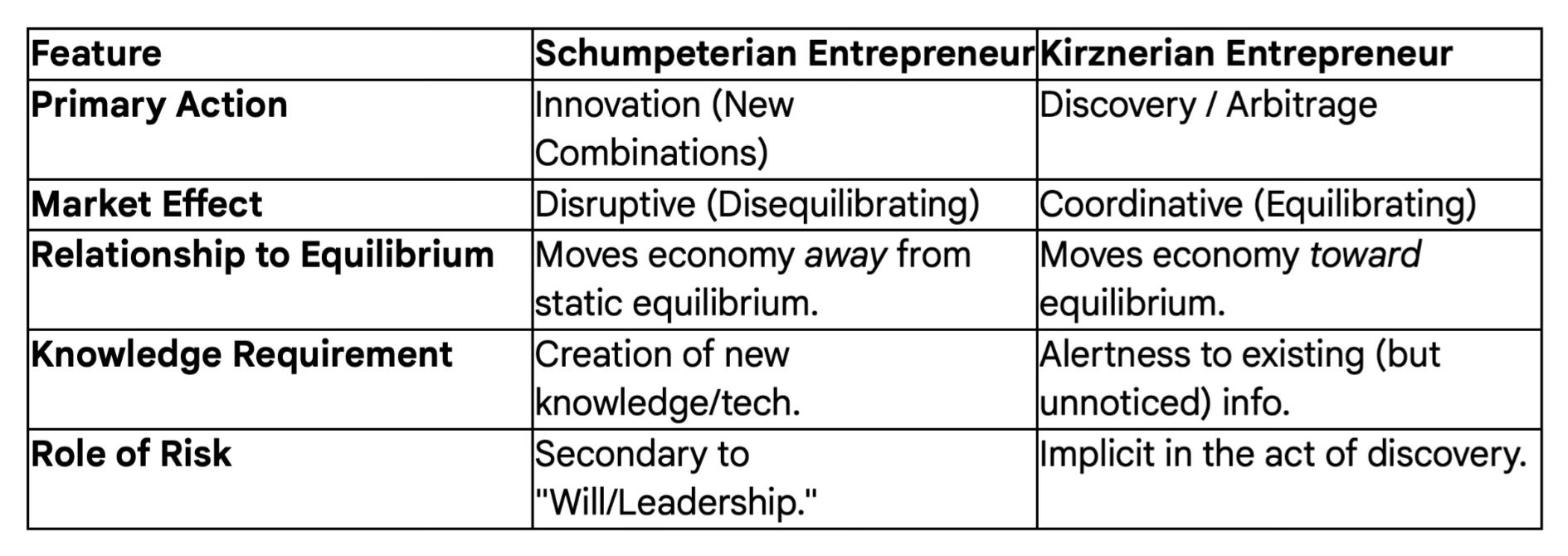 Schumpeter vs. Kirzner on Entrepreneurs - Mises Institute, accessed on November 28, 2025, https://mises.org/mises-wire/schumpeter-vs-kirzner-entrepreneurs